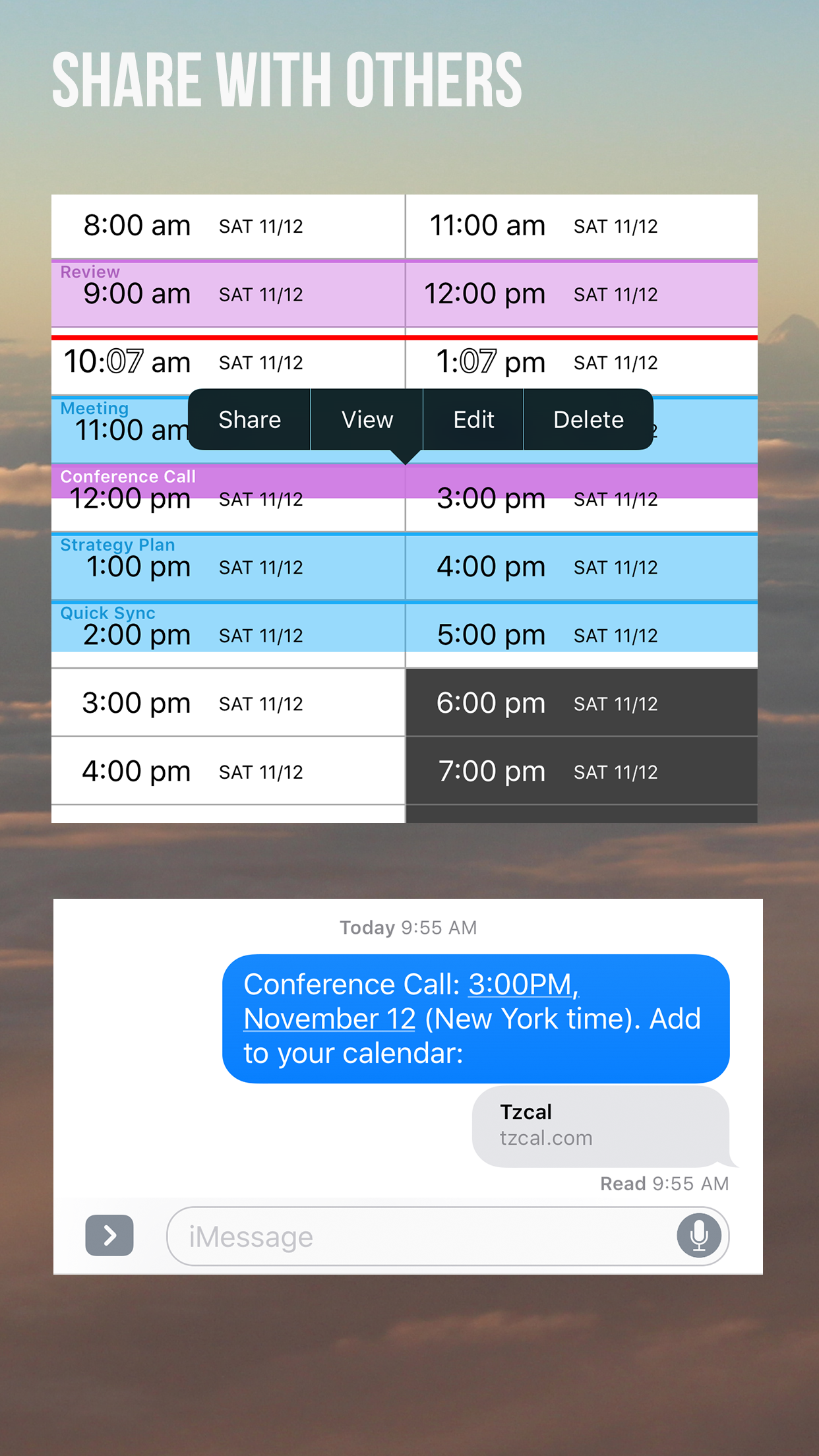 First, if you have not turned on calendar integration in the app’s settings , I suggest you do. This will allow you to create the calendar event once you find the right time. Then go and plan your meeting!